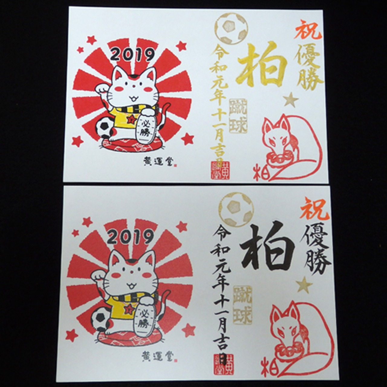 【祝優勝】記念蹴球朱印・柏(見開き版_金文字)